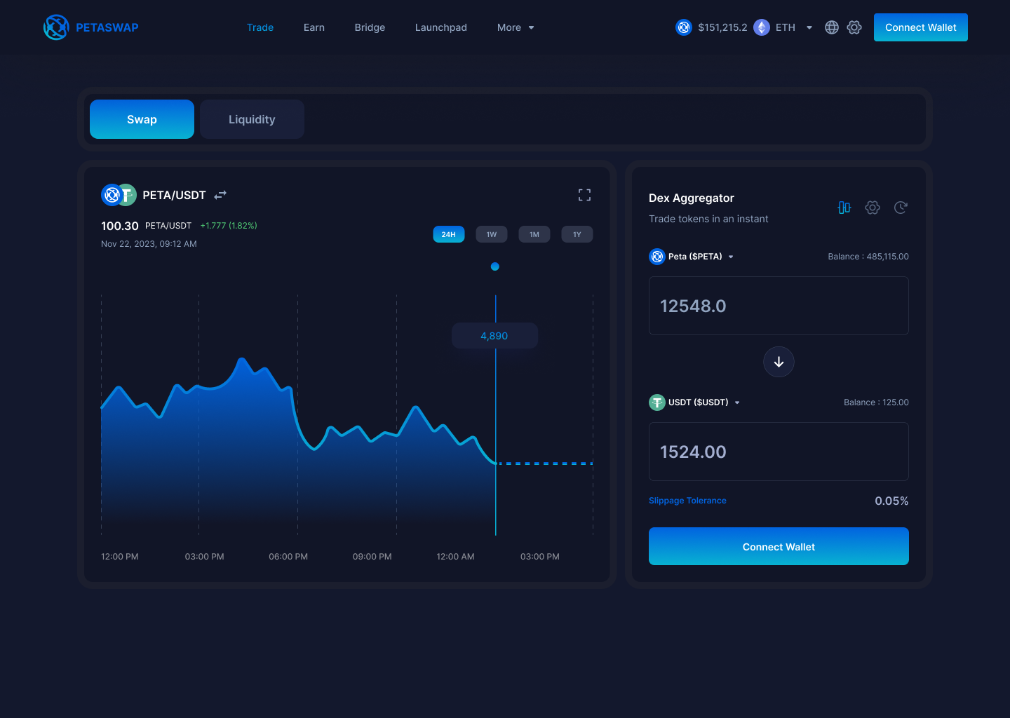 PetaSwap boasts high liquidity pools, enhancing the trading experience for users by reducing slippage and providing ample liquidity for various token pairs.